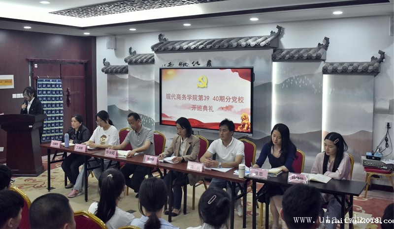 为深入学习贯彻习近平新时代中国特色社会主义思想,切实加强对入党积极分子的培养、教育和考察,严把党员发展入口关,5月12日中午,现代商务学院第39、40期入党积极分子培训班在经管楼五楼会议室开班,学院党总支负责人许兴旺、学生党支部书记张舒婷、团总支书记丁润青、学院全体专职辅导员及第39、40期全体入党积极分子参加开班会。